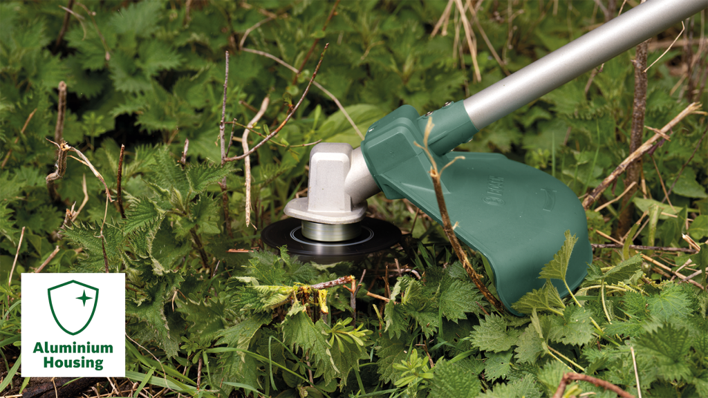 - Snažna struna za sečenje savlađuje zeleno rastinje poput grube trave i koprive