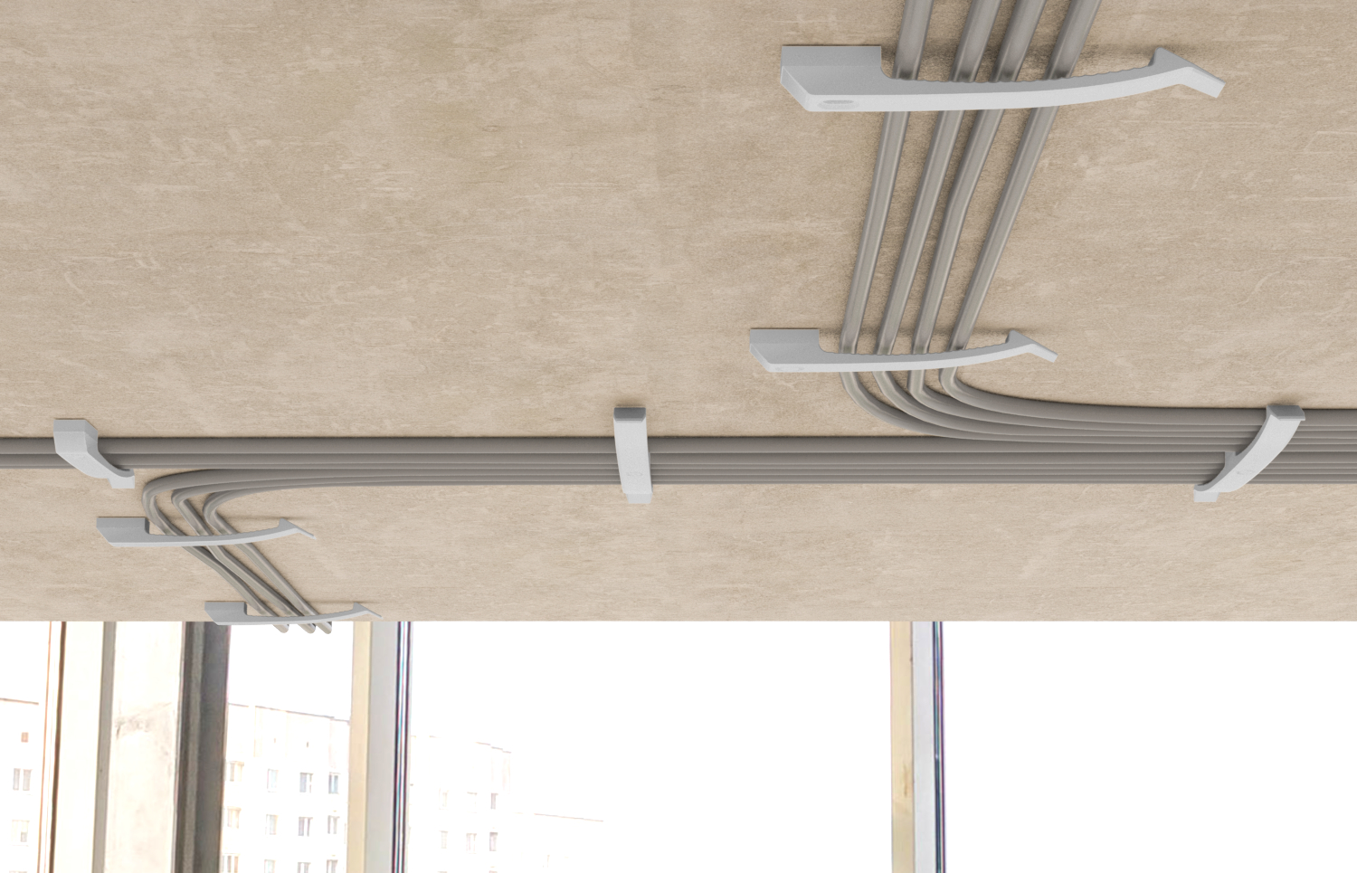 - Kablovi se zatim povlače ispod kopče. Dodatni kablovi se mogu lako položiti i nakon instalacije.