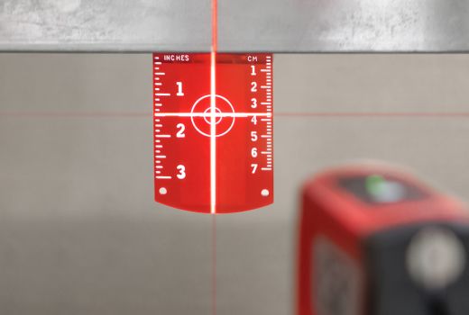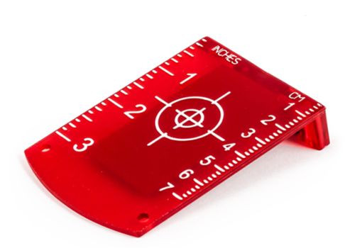 - Laserska meta služi za lakše uočavanje crvene linije lasera, pogotovo na neravnim površinama i površinama gde se linija lasera može lako prekinuti (kao što su neravno postavljene pločice ili pod sa udubljenjem ili ispupčenjem