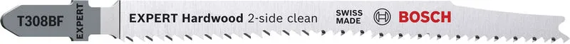 Napravljen od Bi-Metala – trake čelika za velike brzine zalepljenog za fleksibilni čelični list testere kako bi se kombinovala snaga i fleksibilnost – Bosch EXPERT Hardwood 2-side clean list ubodne testere je dovoljno robustan da iseče kuhinjske ploče od laminirane iverice ili tvrdo drvo. Dostupan je za uzastopne rezove bez cepanja (T308BF) i za posebno precizne rezove bez cepanja pod uglom (T308BFP).