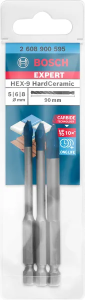 Set EXPERT Hard Ceramic HEX-9 burgija 5 ×90; 6×90; 8×90 mm, 3 dela je profesionalni Bosch alat namenjen za zahtevne radove u građevinarstvu, instalacijama i montaži.