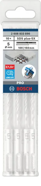 PRO SDS plus-5X burgija za udarne bušilice od 5×100×160 mm, 10 kom je profesionalni Bosch alat namenjen za zahtevne radove u građevinarstvu, instalacijama i montaži.