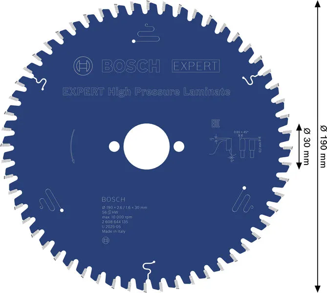 EXPERT High Pressure Laminate list kružne testere 190×2,6/1,6×30 mm, T56 je profesionalni Bosch alat namenjen za zahtevne radove u građevinarstvu, instalacijama i montaži.