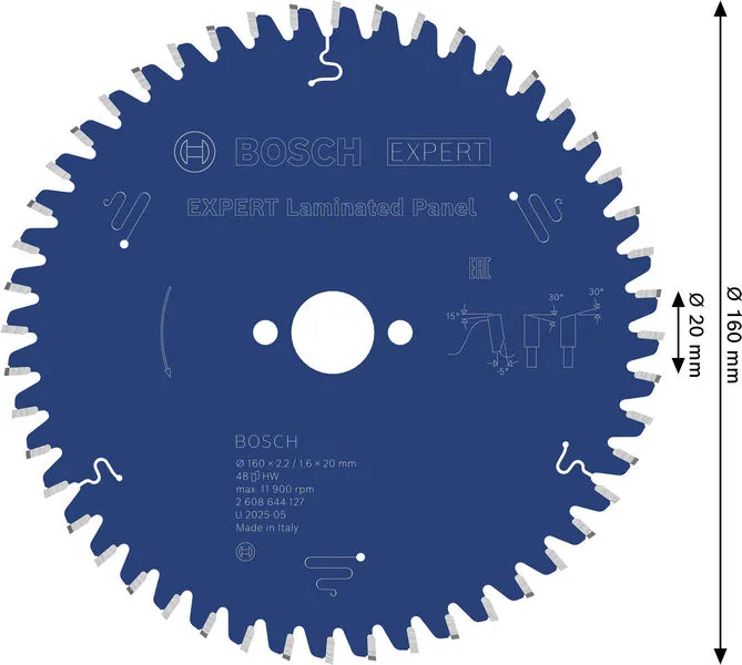 EXPERT Laminated Panel list kružne testere 160×2,2/1,6×20 mm, T48 je profesionalni Bosch alat namenjen za zahtevne radove u građevinarstvu, instalacijama i montaži.