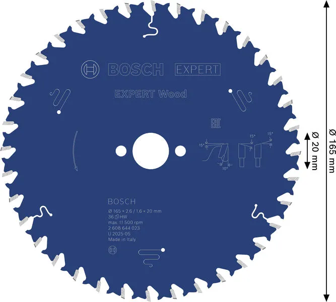EXPERT Wood list kružne testere 165×2,6/1,6×20 mm, T36 je profesionalni Bosch alat namenjen za zahtevne radove u građevinarstvu, instalacijama i montaži.