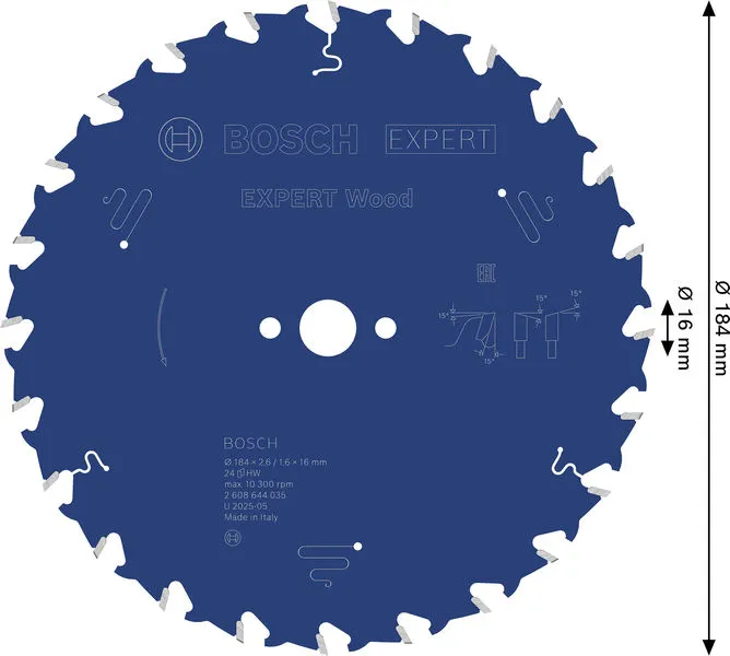 EXPERT Wood list kružne testere 184×2,6/1,6×16 mm, T24 je profesionalni Bosch alat namenjen za zahtevne radove u građevinarstvu, instalacijama i montaži.