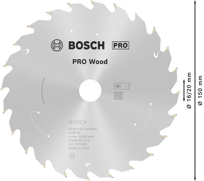 Bosch PRO Wood list akumulatorske kružne testere 150×1,6×20 mm, T24 2608837674