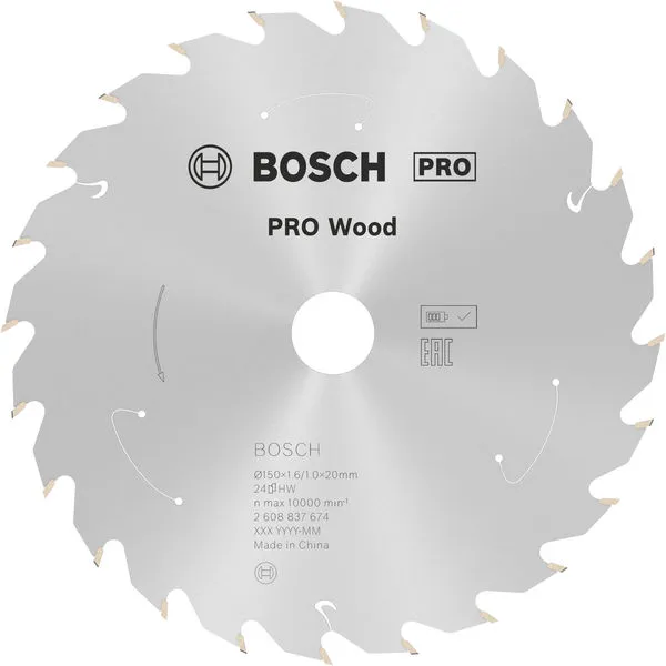 PRO Wood list akumulatorske kružne testere 150×1,6×20 mm, T24 je profesionalni Bosch alat namenjen za zahtevne radove u građevinarstvu, instalacijama i montaži.