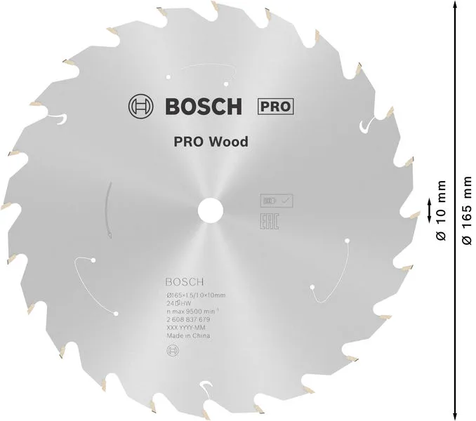 PRO Wood list akumulatorske kružne testere 165×1,5×10 mm, T24 je profesionalni Bosch alat namenjen za zahtevne radove u građevinarstvu, instalacijama i montaži.