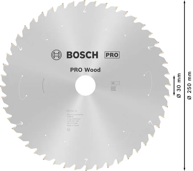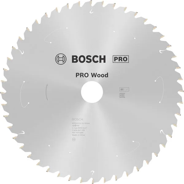 PRO Wood list akumulatorske kružne testere 250×2,2×30 mm, T48 je profesionalni Bosch alat namenjen za zahtevne radove u građevinarstvu, instalacijama i montaži.