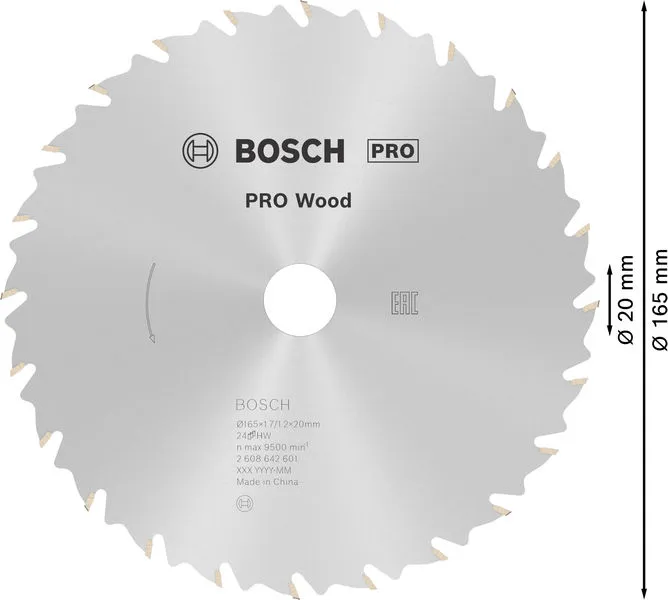 PRO Wood list kružne testere 165×1,7×20 mm, T24 je profesionalni Bosch alat namenjen za zahtevne radove u građevinarstvu, instalacijama i montaži.