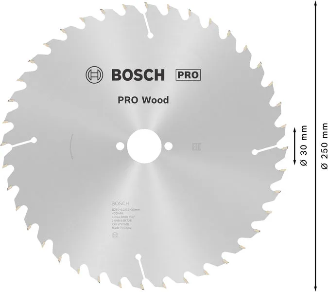 PRO Wood list kružne testere 250×3,2×30 mm, T40 je profesionalni Bosch alat namenjen za zahtevne radove u građevinarstvu, instalacijama i montaži.