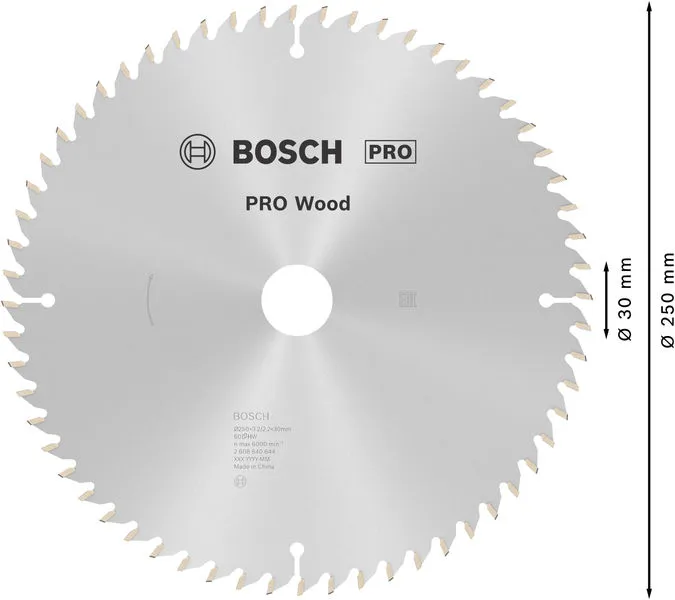PRO Wood list kružne testere 250×3,2×30 mm, T60 je profesionalni Bosch alat namenjen za zahtevne radove u građevinarstvu, instalacijama i montaži.