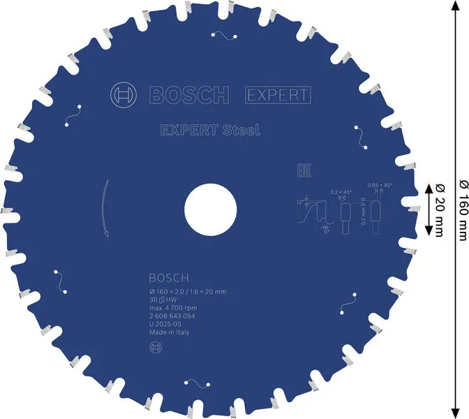 EXPERT Steel list kružne testere 160×2/1,6×20 mm, T30 je profesionalni Bosch alat namenjen za zahtevne radove u građevinarstvu, instalacijama i montaži.