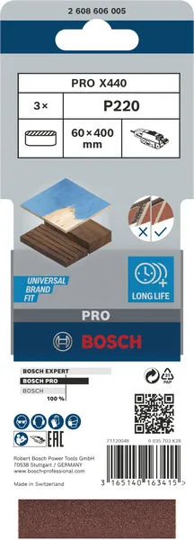 PRO X440 brusna traka 60×400 mm, G240, 3 kom je profesionalni Bosch alat namenjen za zahtevne radove u građevinarstvu, instalacijama i montaži.