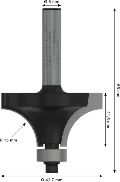 Bosch PRO glodalo za zaobljavanje R 15, prihvat 8 mm 2608628345