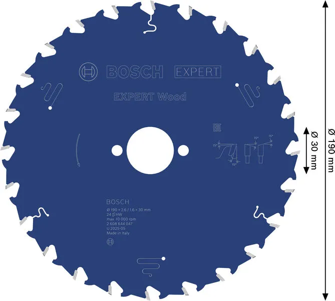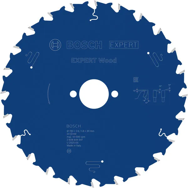 EXPERT Wood list kružne testere 190×2,6/1,6×30 mm, T24 je profesionalni Bosch alat namenjen za zahtevne radove u građevinarstvu, instalacijama i montaži.