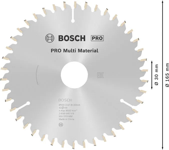 PRO Multi Material list kružne testere 165×2,4×30 mm je profesionalni Bosch alat namenjen za zahtevne radove u građevinarstvu, instalacijama i montaži.