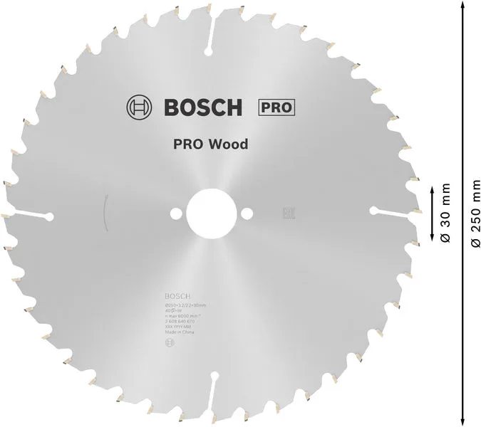 PRO Wood list kružne testere 250×3,2×30 mm, T40 je profesionalni Bosch alat namenjen za zahtevne radove u građevinarstvu, instalacijama i montaži.