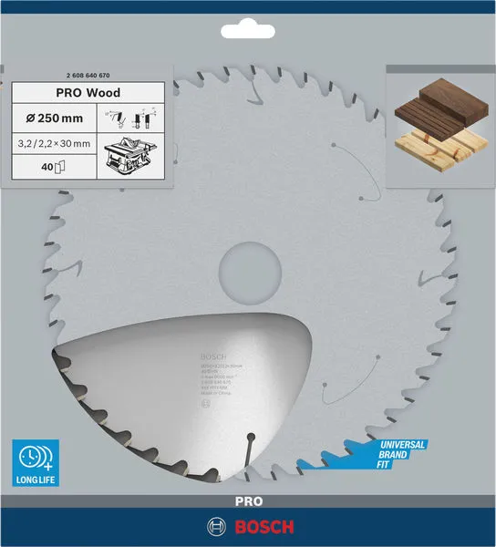 Bosch PRO Wood list kružne testere 250×3,2×30 mm, T40 2608640670