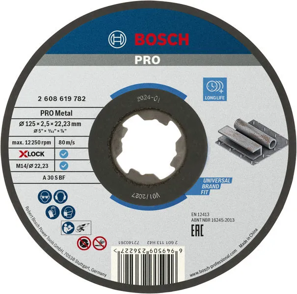 PRO Metal lepljena rezna ploča 125×2,5×22,23 mm, X-Lock, ravna je profesionalni Bosch alat namenjen za zahtevne radove u građevinarstvu, instalacijama i montaži.