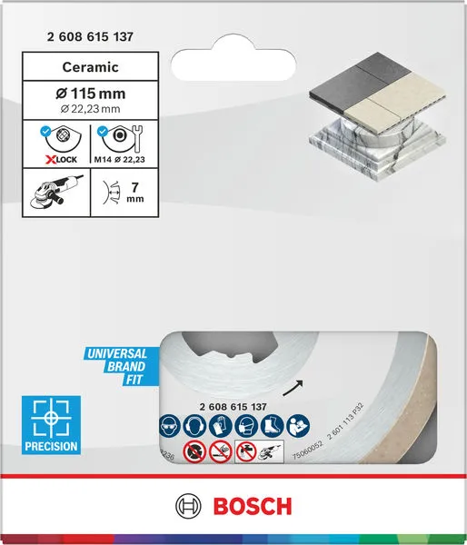 Ceramic Dijamantska rezna ploča 115×7 mm, otvor X-Lock je profesionalni Bosch alat namenjen za zahtevne radove u građevinarstvu, instalacijama i montaži.