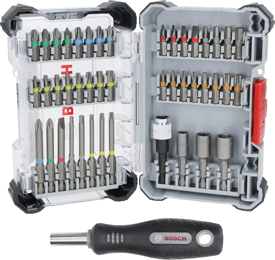 Extra Hard Set, 44+1 komad sadrži sve standardne nastavke i nastavke za matice koji su vam potrebni da biste obavili zadatke zavrtanja vijaka. Nastavci za odvrtač su napravljeni od kaljenog S2 modifikovanog čelika za tvrdoću i otpornost na habanje. Obeleženi su bojama tako da lakše možete da izaberete odgovarajući nastavak. Set je smešten u robusnoj Pick and Click kutiji pomoću koje možete napraviti sopstvenu kutiju za alat i lepo organizovati i zaštititi nastavke. Uključuje magnetnu dršku odvrtača za bezbedno držanje bitova.