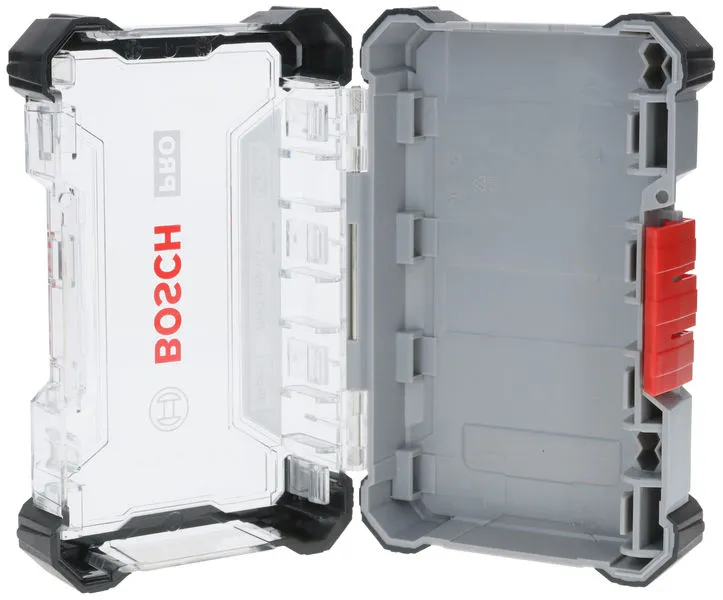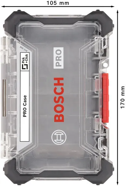 PRO Case vam pomaže da organizujete nastavke za odvrtač, burgije i vijke i da ih bezbedno odložite. Kutiju možete lako zaključati i otvoriti. Kompatibilna je sa Bosch Pick and Click kutijama i plastičnim držačima nastavaka što znači da lako možete da ih kliknete i napravite sopstvenu kutiju sa alatom.