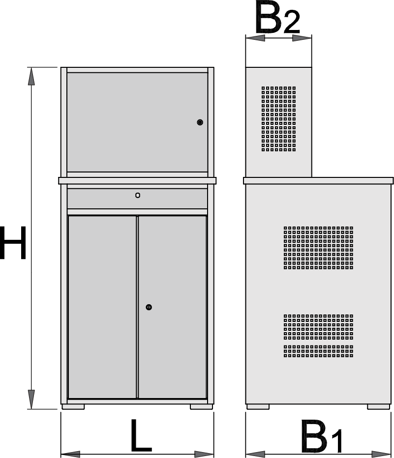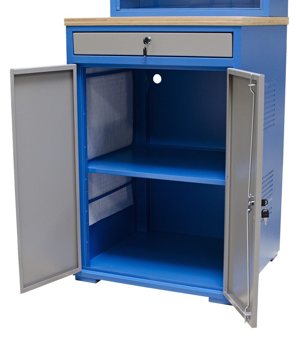 - Predviđen prostor za računar i dodatnu opremu. Policu je moguće podesiti u 6 različitih položaja. Unutrašnje dimenzije ormana su 635x630x810 mm.